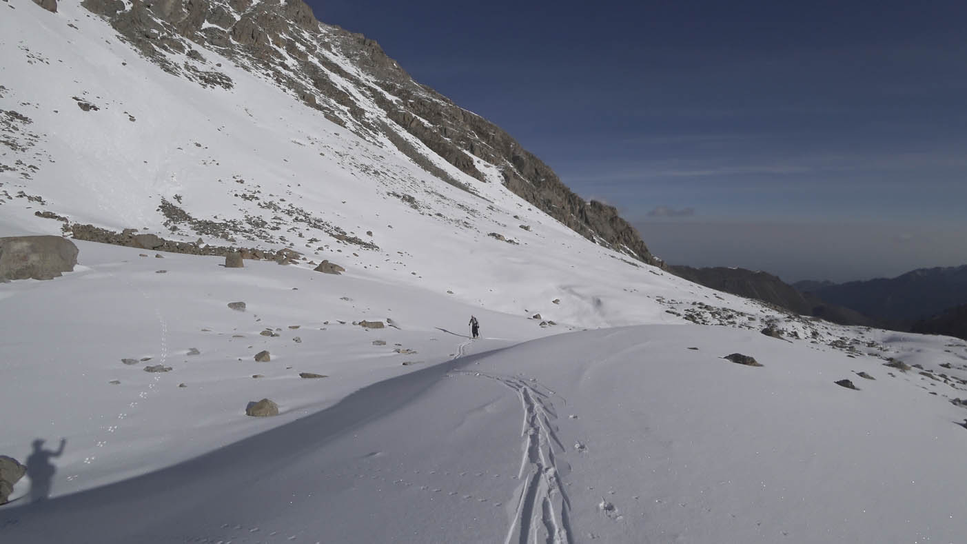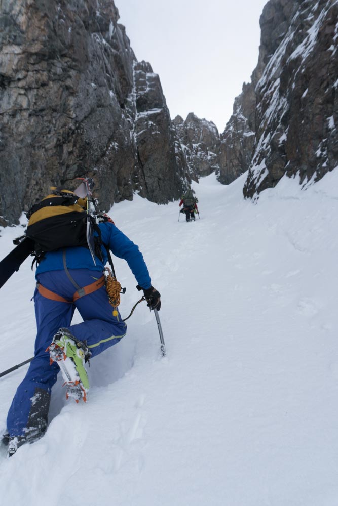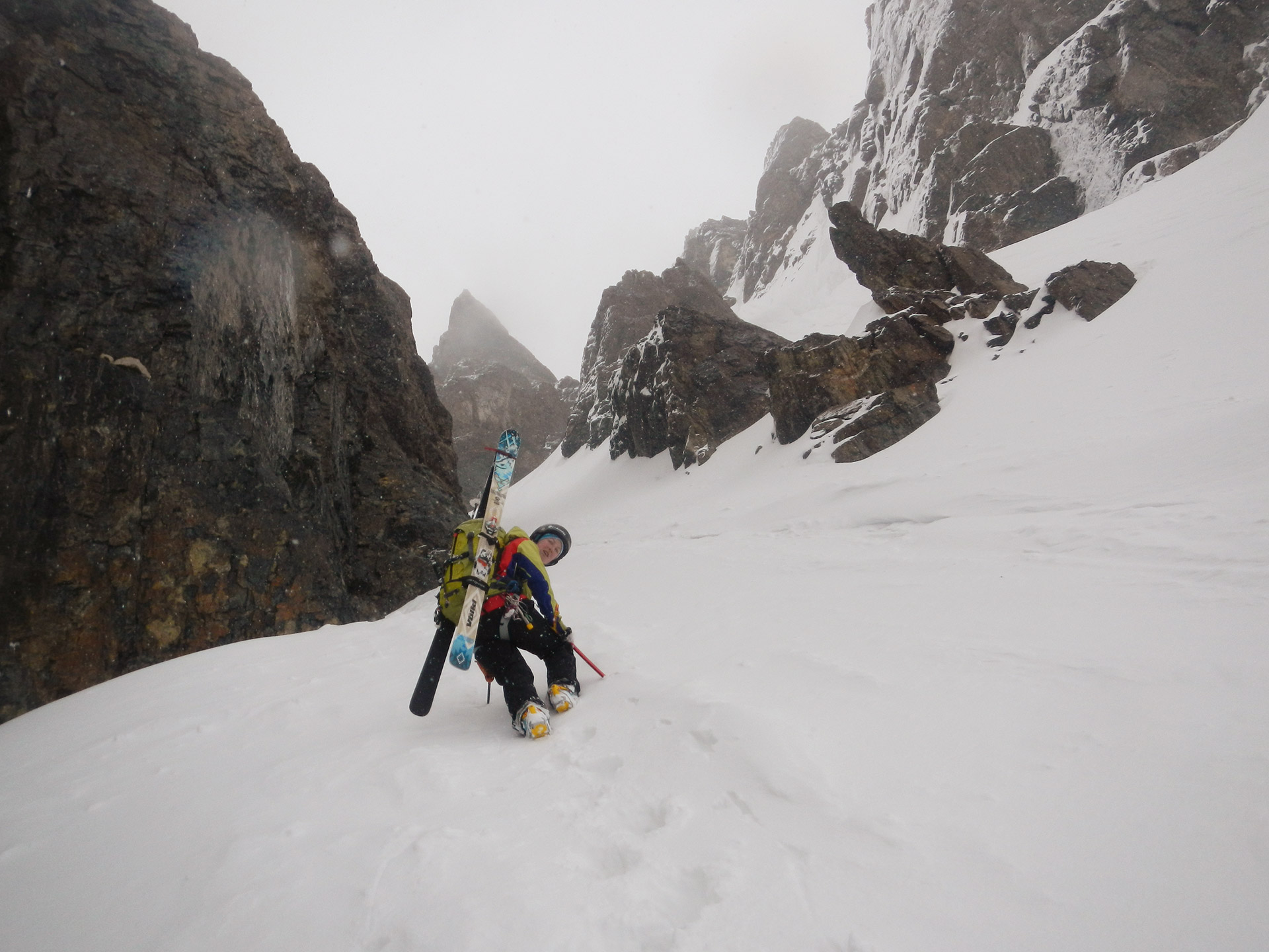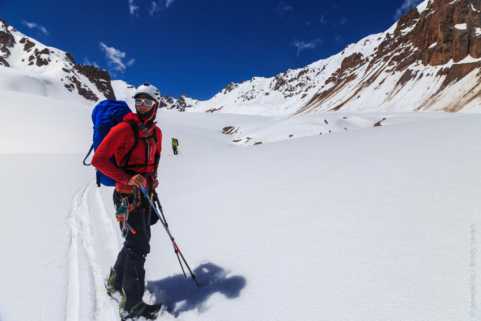 Я сам предпочитаю термин ски-альпинизм (ski-mountaineering), но как быть с Робином? Ведь он отличный бордер на сплите. Да и сам термин, узурпировали всякие бегуны в костюмах в обтяжку, львиная доля которых хороших спусков и не делала вовсе. Что-то я отвлекся, но во время подъема частенько возникают такие философские мысли. «Кто мы?», «Зачем идем вверх?», «Зачем катим и рискуем?»