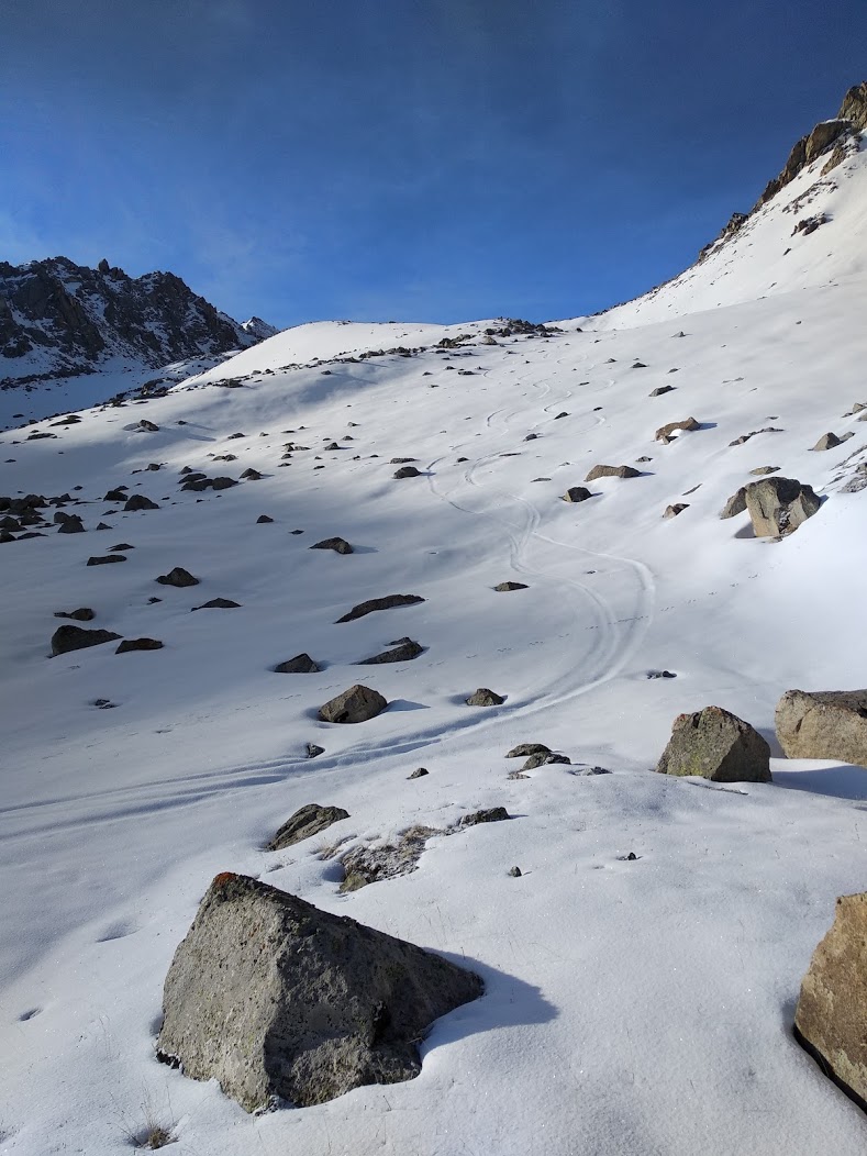 Это наверное единственный год когда я не катался на Космостанции и в Сухом логу. Катание по камням фрирайдом не является и очень много народа в этом году получило серьезные травмы. Даже за всю зиму возле города, мы сделали только 2 бэккантри выхода, и (3 брата и район Сарысая) оба раза было минимальное количество снега + лавиноопасные условия. Конечно район нашей юрты конкретно спас этот и без того сложный сезон в котором снега по ощущениям на 30%-40% меньше от нормы. Такой вот спуск 9 мая с друзьями с Плеча Туюксу (вынужденный), не особо фановый, но скорее тренировочный. Возможно остались последние недели пока окончательно все не растает.