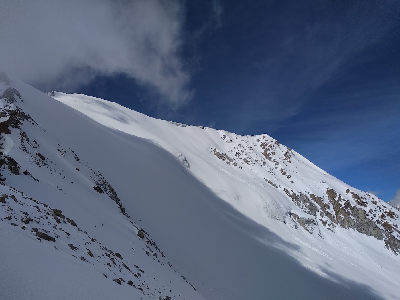 Отличный денек выдался. 22 Апреля получилось сделать новый маршрут или, если быть точнее, закончить старый проект, начатый еще в 2014 Эриком и Максом, которые были первыми в малом кулуаре Подгурского. Какие-то годы эти кулуары Туюк-су бывают в хорошей кондиции, какие-то нет. Опасность схода лавин в этих местах очень высока и рекомендовать данный обзор, тем более расценивать это как руководство к действию, категорически не стоит. Место солнечное, крутое, ветренное и у лавинщиков даже присутствует  нумерация – т.е. лавинный лоток такой-то.