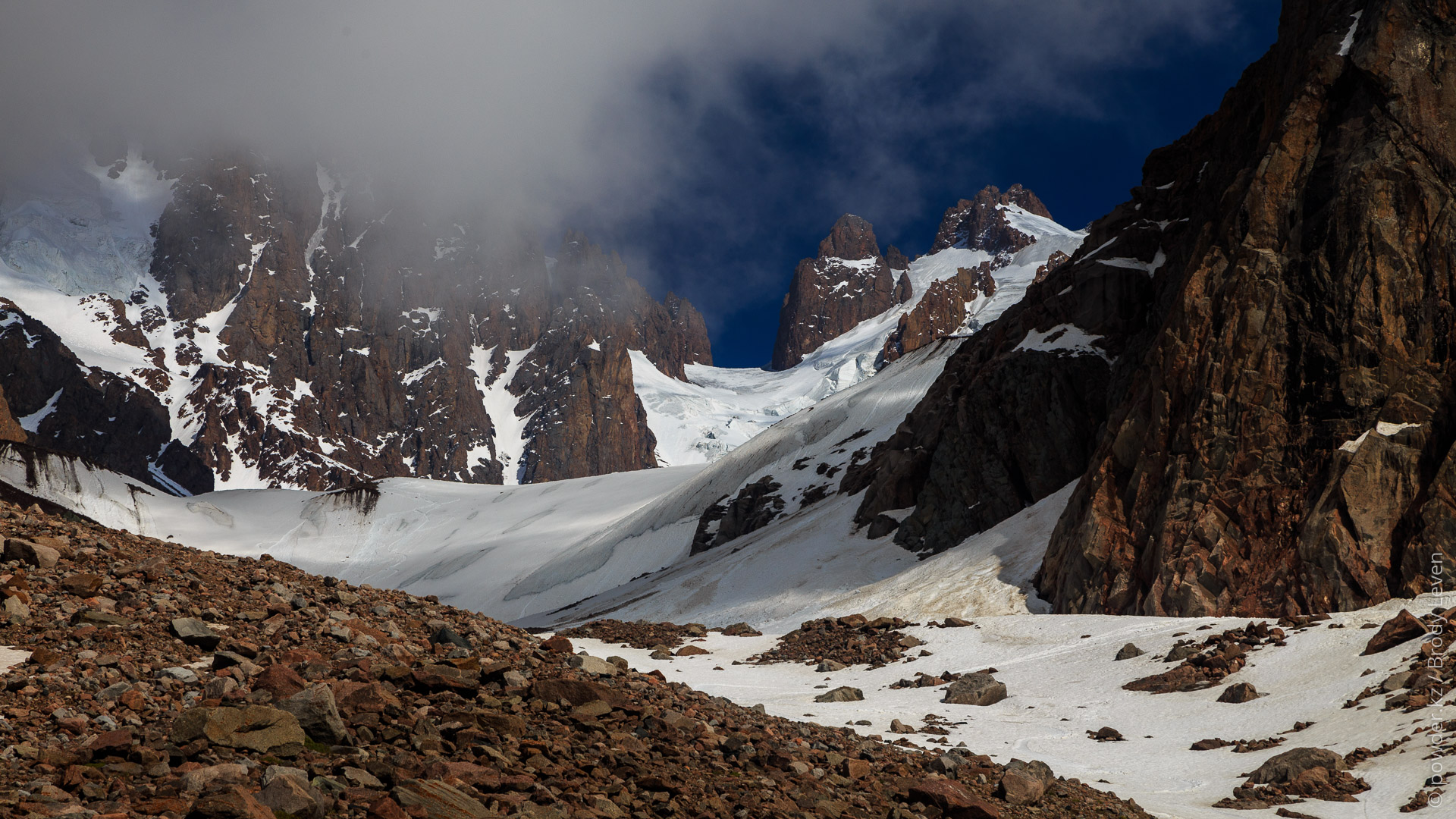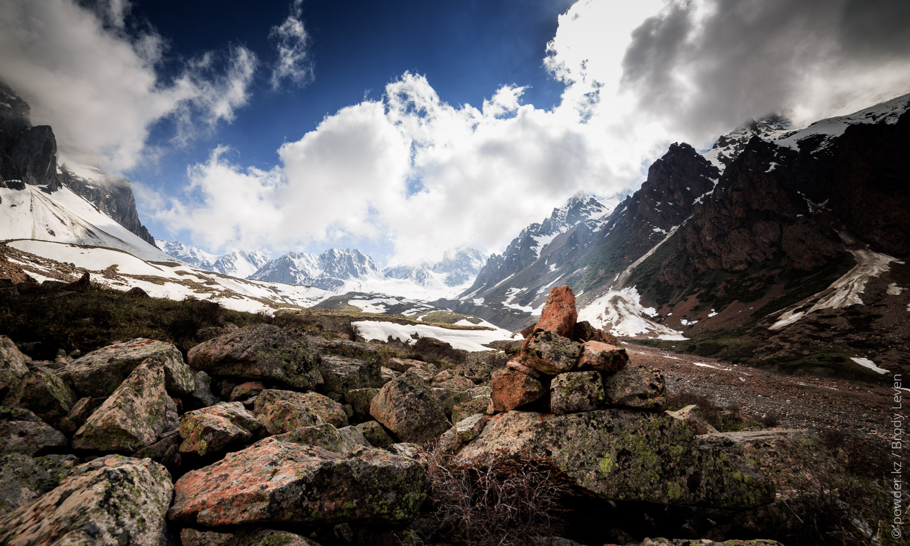 По пути заметили чьи-то следы среди морен и камней. Печаль.