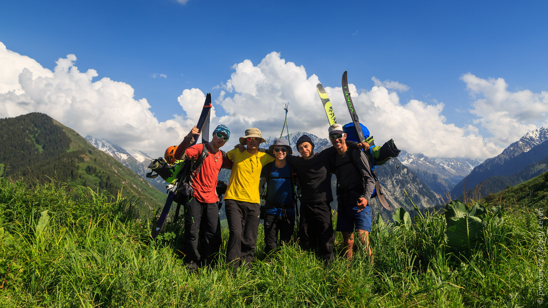 Кстати, за пару недель до приезда ребят я в роли гида сделал кучу спусков в наших горах с европейскими гостями, где вишенкой на торте была экспедиция в удаленный район Ак-Шийрак со спуском с пика СНК, 4946м.