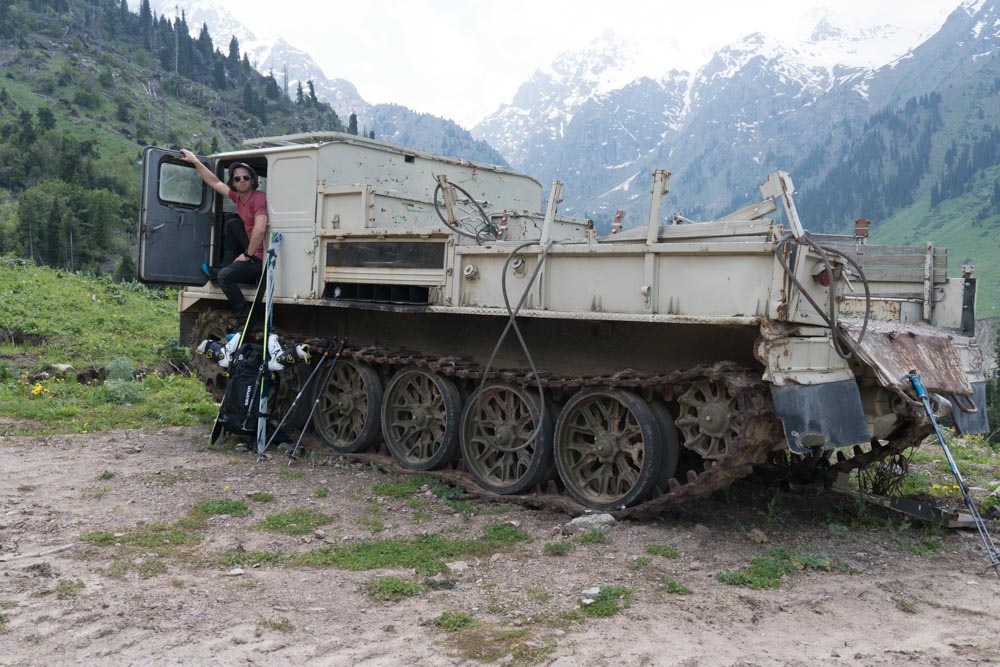 Все стандартно. Мы вместе с Игорем и Аней на двух машинах сгоняли за необходимыми продуктами, загрузились снаряжением и где-то ближе к вечеру приехали на Медео. Подъем на эко-такси до конца асфальта и дальше неспешный трек вверх по дороге до станции Т1 на 3500м в урочище Туюк-су.