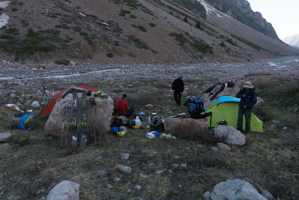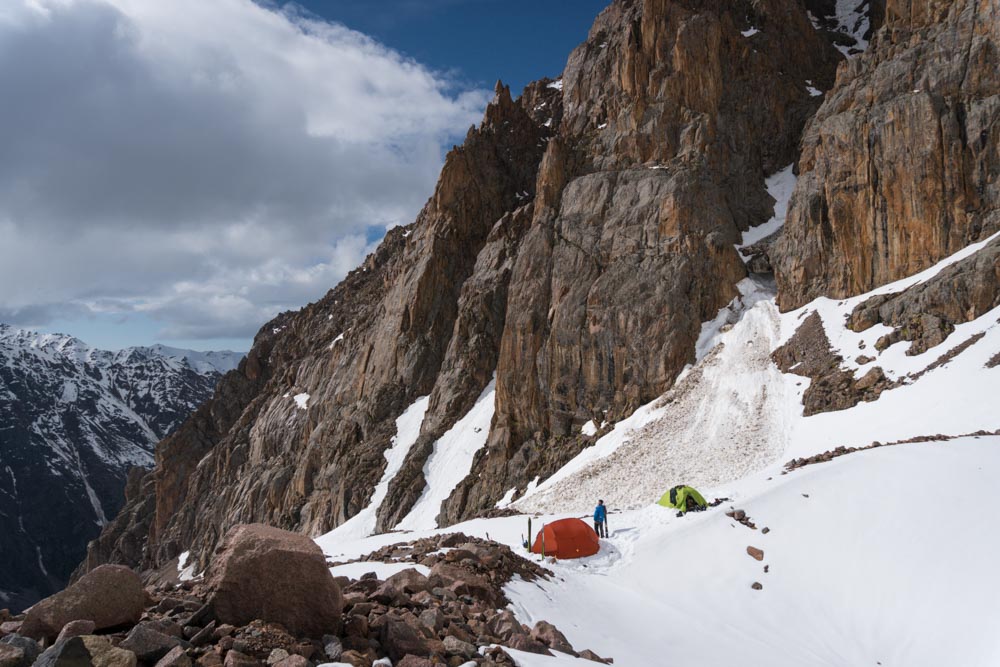 Наши ребята из ЦСКА несколько дней шли под южные склоны Талгара и разбили лагерь под классическим маршрутом.