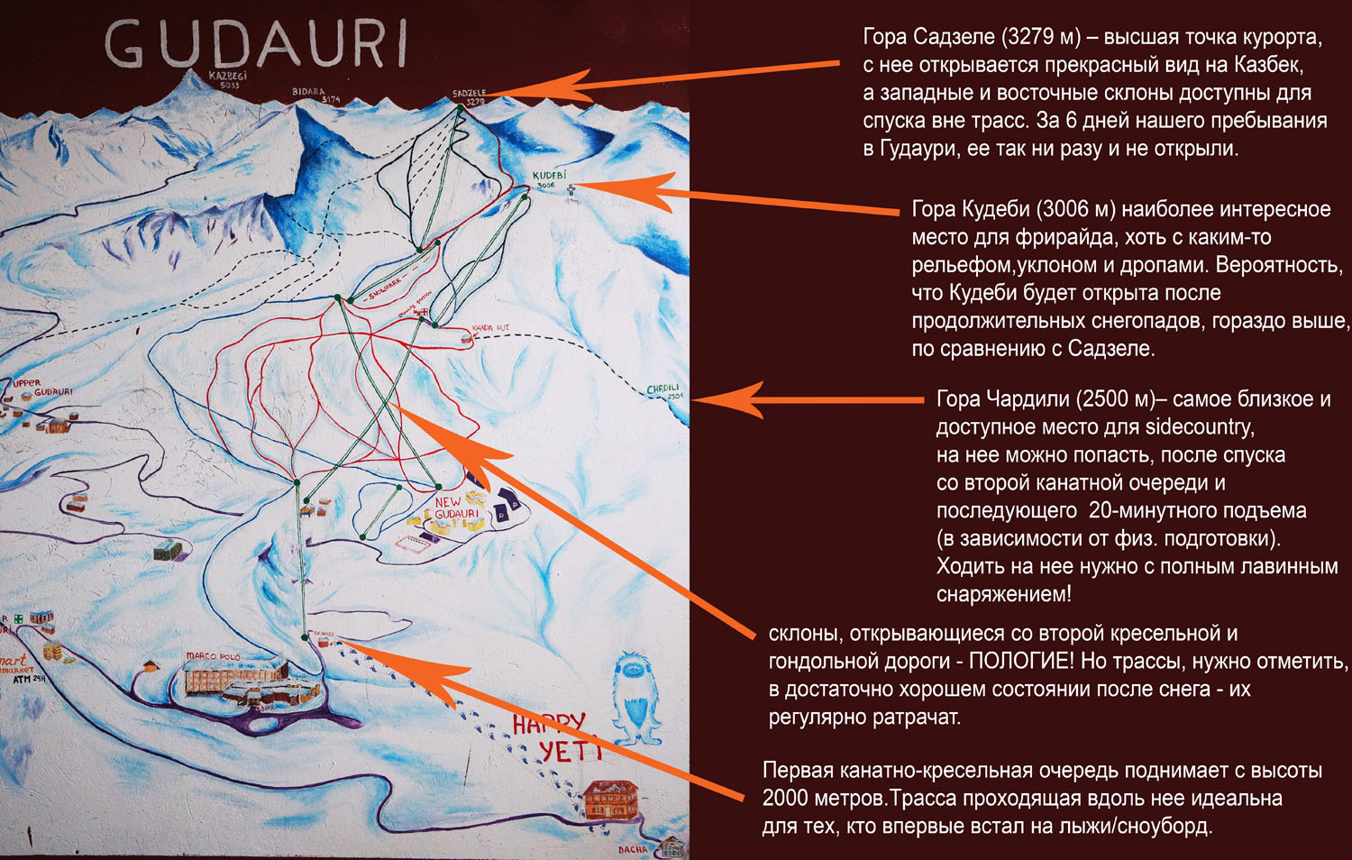 От Гудаури можно ожидать как потрясающего глубокого снега, так и лысых ледяных склонов, можно хвалить его, а можно ругать – но лучше съездить и увидеть все своими глазами. Об этом, собственно, и мой отчет!