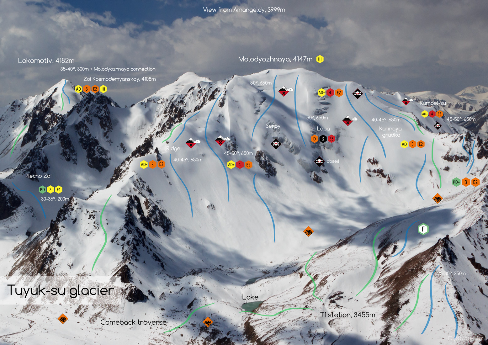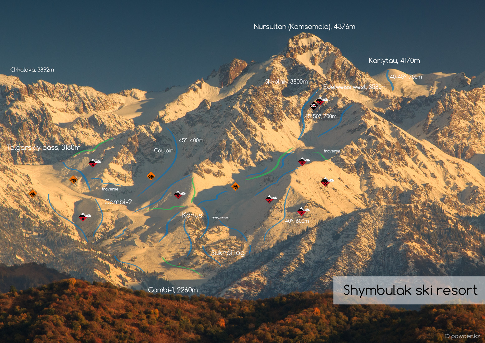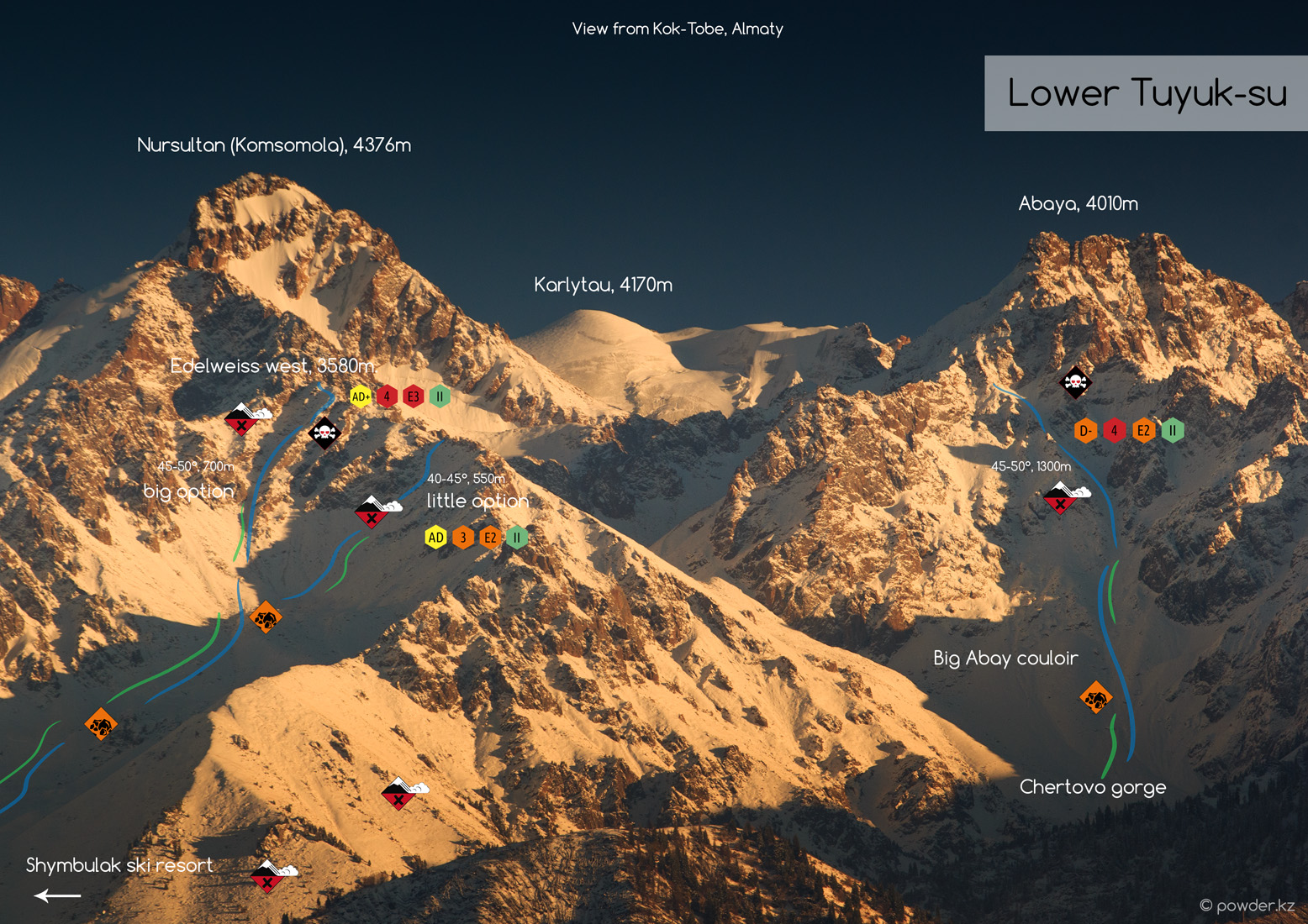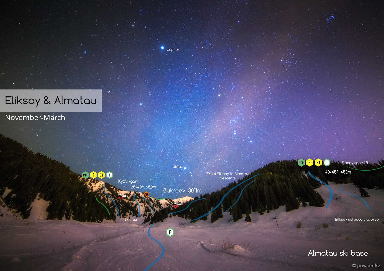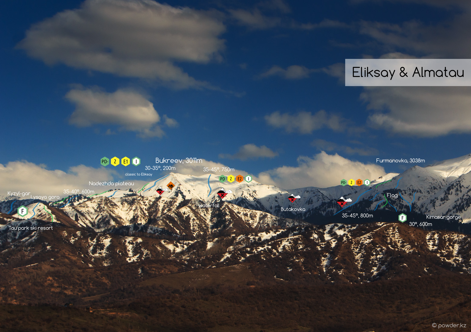 Бэккантри, фрирайд и ски-тур в Алматы, Казахстан – Гайдбук. Шымбулак, Ак Булак, Кок-Жайляу, Бутаковка, Еликсай, Космостанция, Туюк-су, БАО.