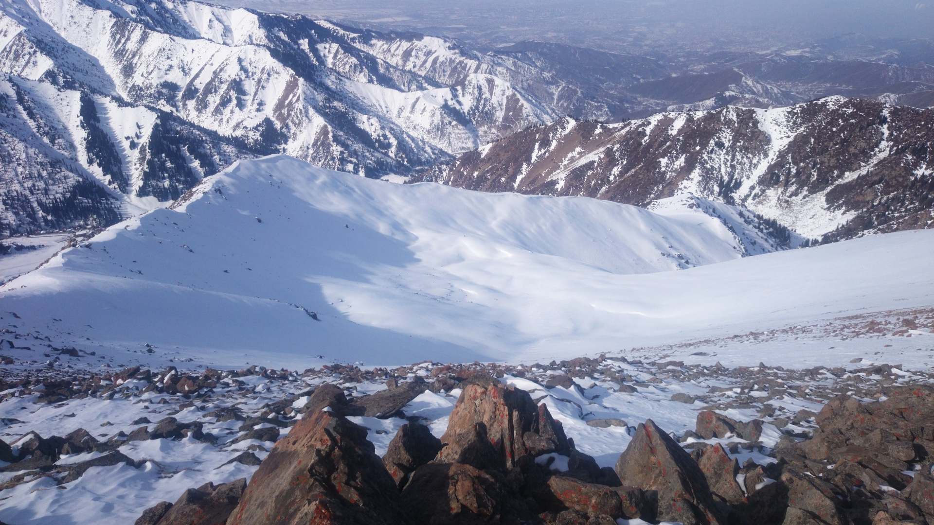 Эта гора была последней вершиной напротив Алматы, на которую не ступала нога райдера. А то и понятно – крутые каменистые склоны, кулуары, большие подветренные поля, перепады температуры. Сколько не смотрел на эту красивую гору, я все никак не мог представить безопасную логичную и красивую линию. Да и логистика подъема казалась непростой задачей.