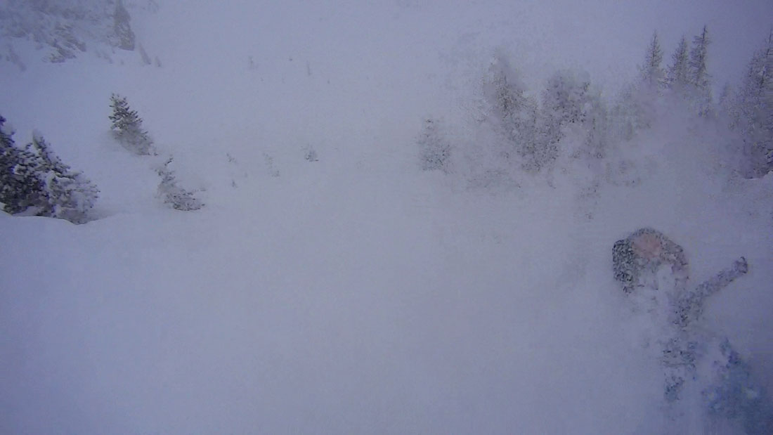 Основные трассы конечно же не ратрачили, поэтому их раскатали за 30 минут почти что до могула. Были слышны взрывы — это наверху, в стороне от основных трасс, взрывали и спускали лавины.
