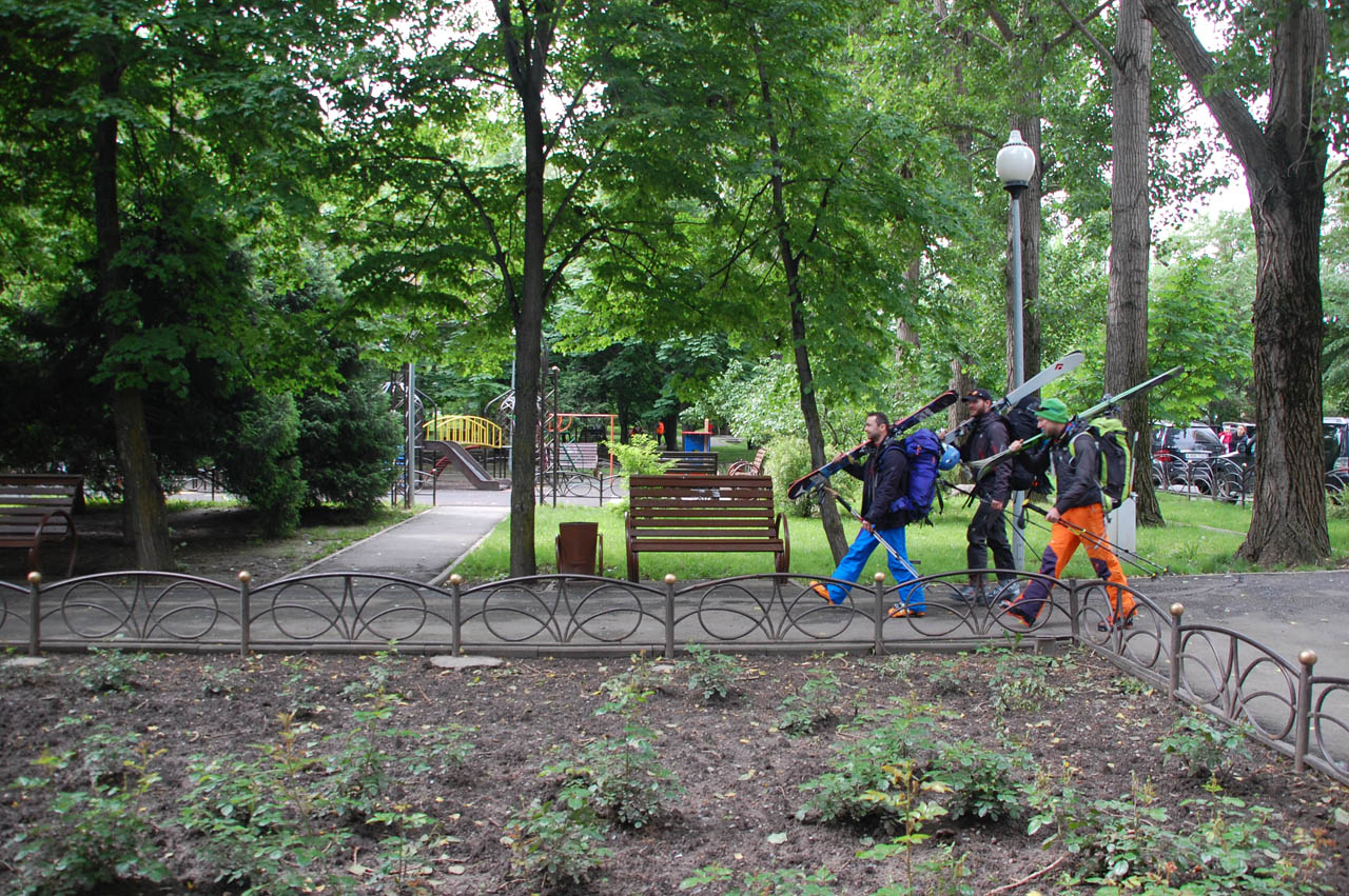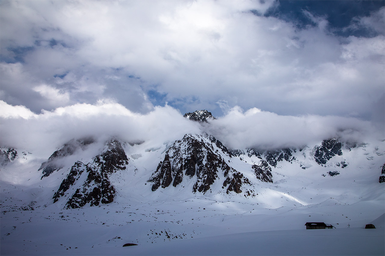 Четыре утра, небо затянуто. Спим еще до 5:00. Вроде раздуло, видимость метров 500, но у меня надежды на окно нет. Надо вставать и собираться. Выехали, наст не держит, тепло. С тяжелым рюкзаком не хватает хвоста, лыжи бы шире и длиннее. Надо держать скорость, но видимости нет. То и дело бугорок или яма. О идеи спуститься через пик Памяти не может идти и речи. Дорога полностью засыпана, лавиноопасно. Спустились кое-как. Ниже Мынжылков ехать проще, но тут облако и льет дождь, чуть промокли. Доехали до Бастионов Октябренка, а потом пешком до Чимбулака. Вниз в жестких ботинках не очень, страдают колени, шли без спешки. Такси до Медео, автобус. От остановки домой, пешком через весенний зеленый город. Внизу буйство красок и жизни – вверху белое недружелюбное безмолвие.