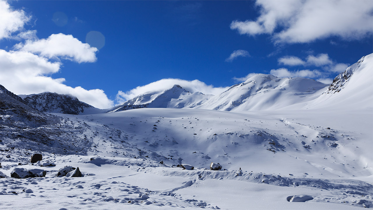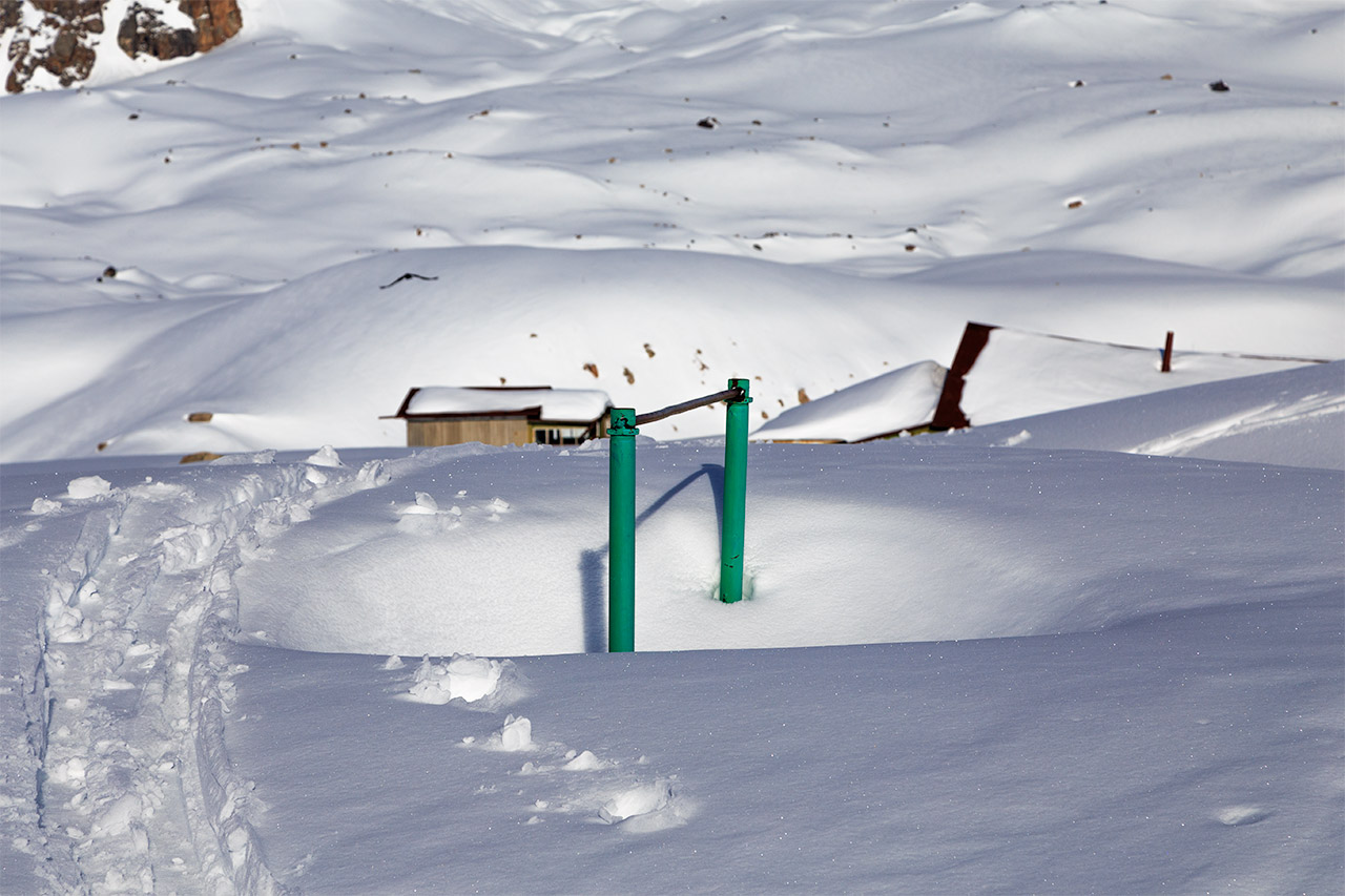 Подъем в 6:00. За окном белая пелена. Опять задремал. Проснулись в уже 10:30. Навалило 60см свежего классного снега. По базе передвигаться проблематично. Зверьков жалко. Вася двумя днями ранее нашел дохлого сурка на дороге, снега много, трава вся засыпана. Позавтракали. Делать пока нечего, играли в карты. Чуть-чуть раздуло. Как-то быстро собрались и пошли на гребень в сторону Зеленого Кара. Наш обычный осенний маршрут, но сейчас весна и такие осадки.
