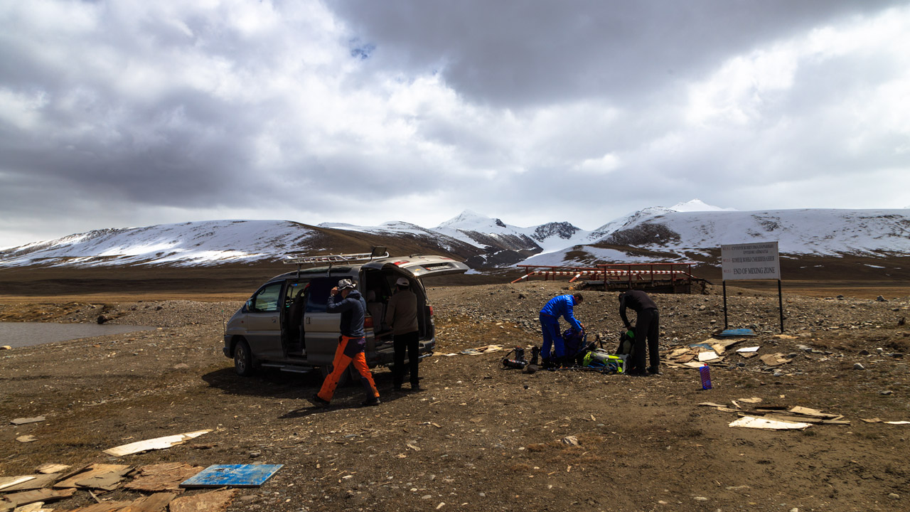 Проснулись как обычно в 6:00. Протеин, мюсли, кофе. Настроение отличное, а вот погода как обычно не очень.  Не хочу никуда идти, мы в такую погоду ходим редко. Морену прошли в легкую. Такой засыпанной я еще ее не видел. Идем по следам, мужики с базы копали много шурфов на леднике. Опять все затянуло, туман. До «трактора» дошли быстро. Бельгийские друзья уже акклиматизировались. Ни черта не видно, подождали минут 30. Идти выше или ехать вниз? Даже я бы потерялся. Поехали.