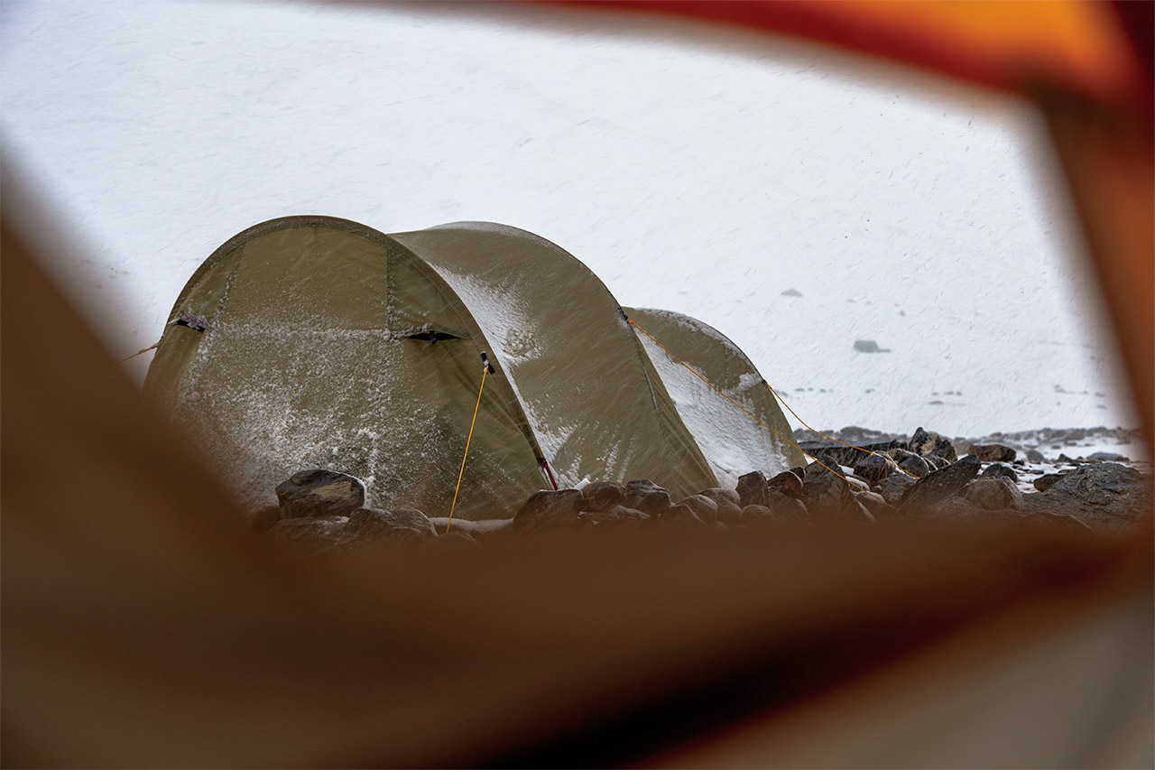 Бивак разбили на морене под ледником Тиль, на хорошем месте для съемок и где все выкаты сходились в одну точку. По прогнозу в понедельник до обеда ожидалась хорошая погода, а во вторник идеальный день и, как оказалось, прогноз не соврал.