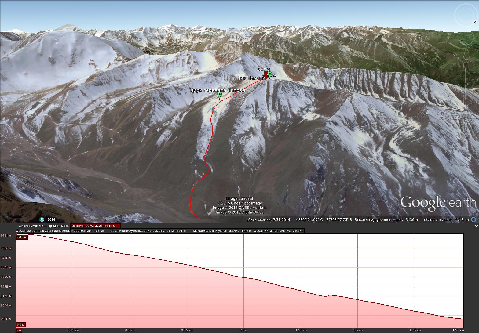 За основным гребнем пика Памяти небольшой кулуар выходящий к перевалу Титова. Отличное новое место!